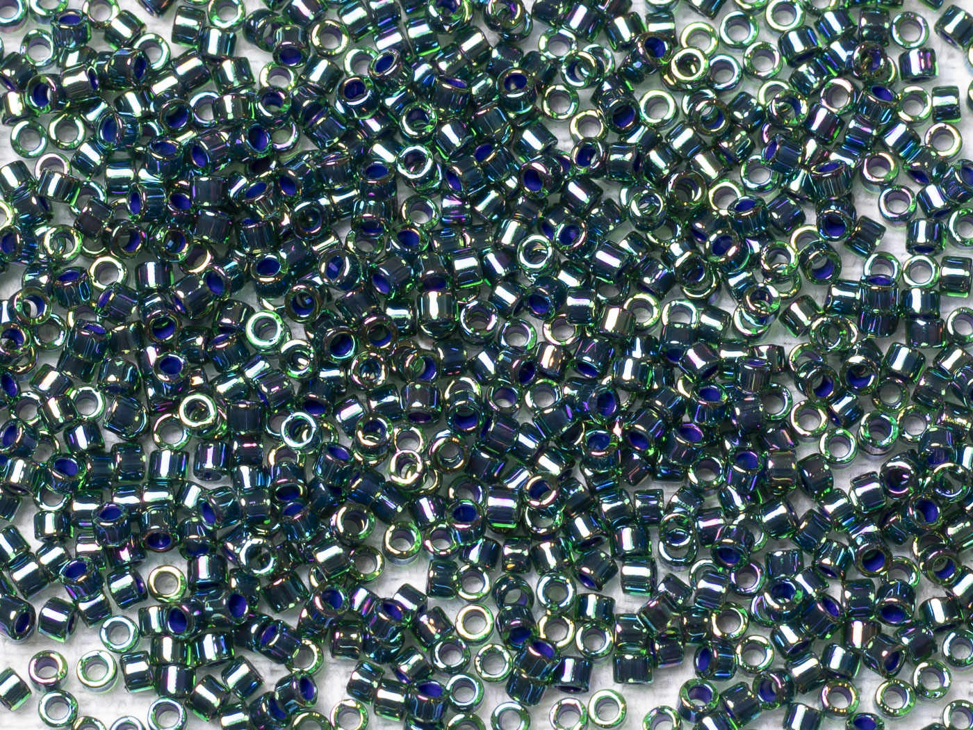 Бисер Япония MIYUKI Delica цилиндрический 11/0 5г DB-0276 изумрудный радужный с цветной линией