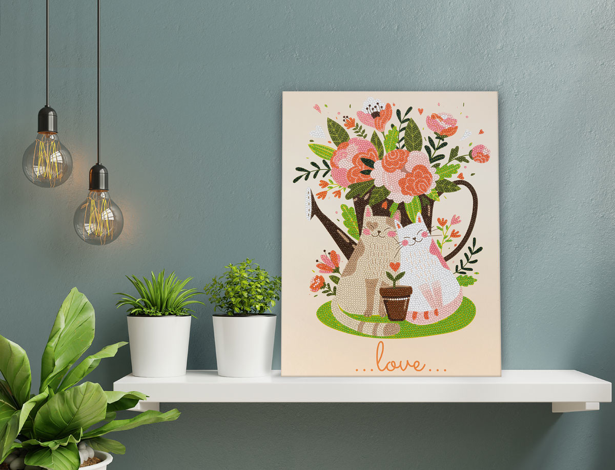 Кристальная ( алмазная) мозаика " ФРЕЯ" ALBP- 308 постер " Цветы и котики" 30 х 40 см