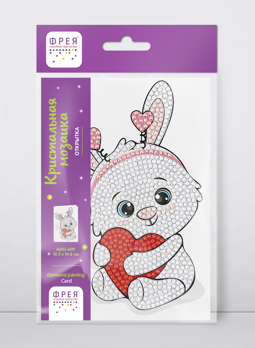 Кристальная ( алмазная) мозаика " ФРЕЯ" ALVO- 609 открытка " Влюбленная зайка" 10. 5 х 14. 8 см